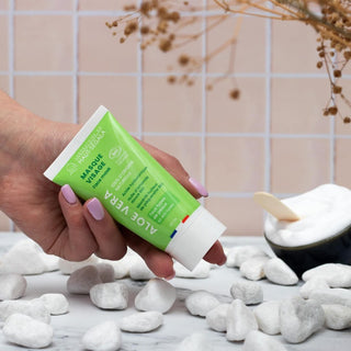 • Dopo aver applicato il nostro scrub viso all'Aloe Vera, applicare la maschera in uno strato sottile su tutto il viso, sulla pelle pulita e asciutta.